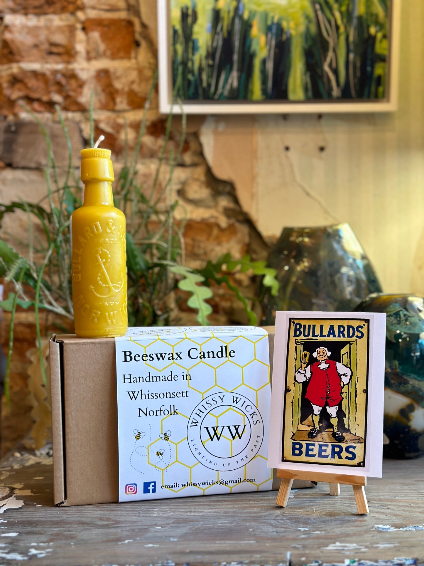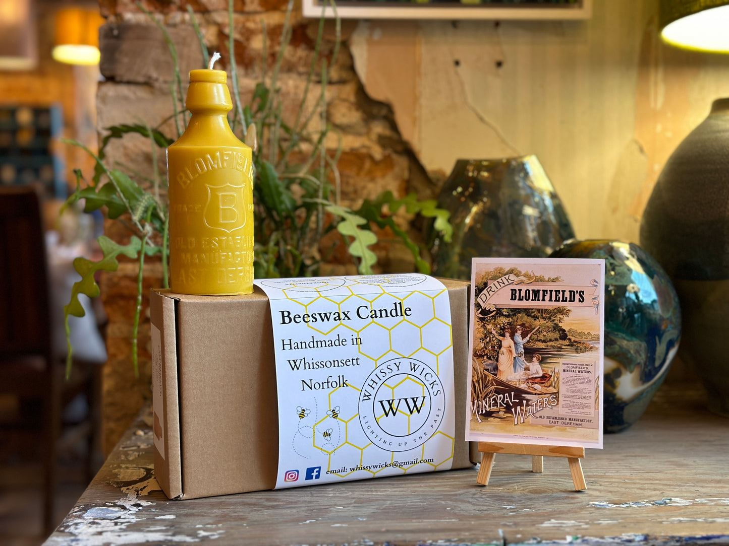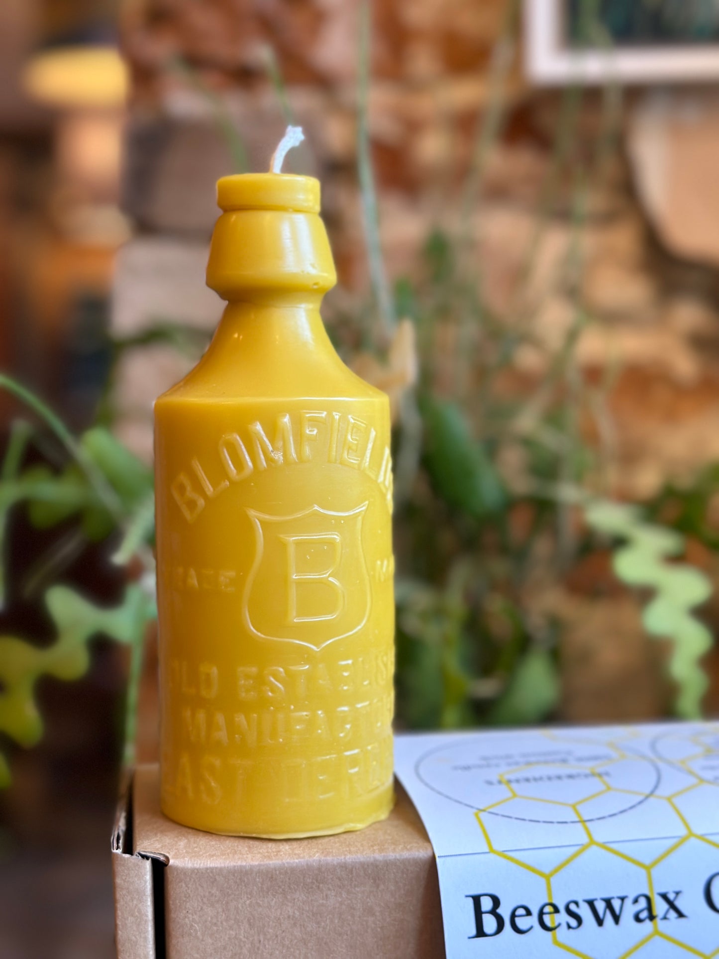 Beeswax candle formed from a vintage Blomfield Ginger Beer bottle. This late Victorian bottle was found in Whissonsett Norfolk.