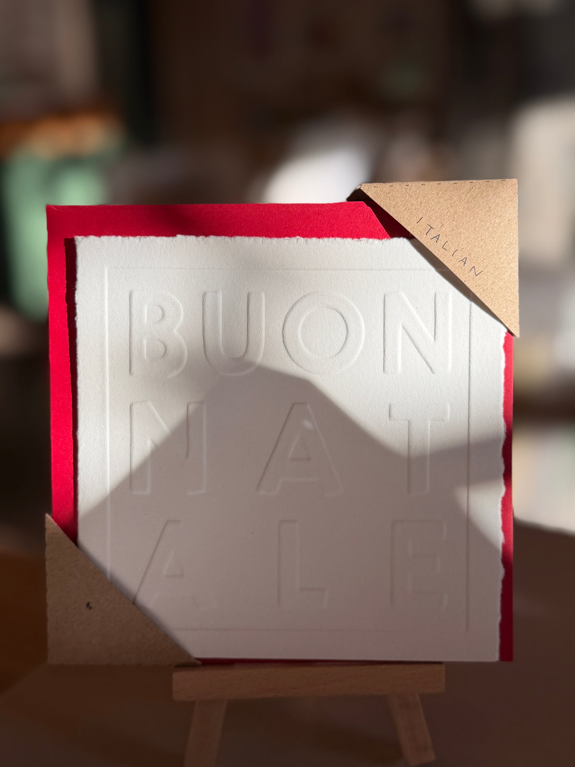 Archival art paper, sourced as waste from a local screen printers. Embossed by hand with “Happy Birthday”.