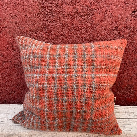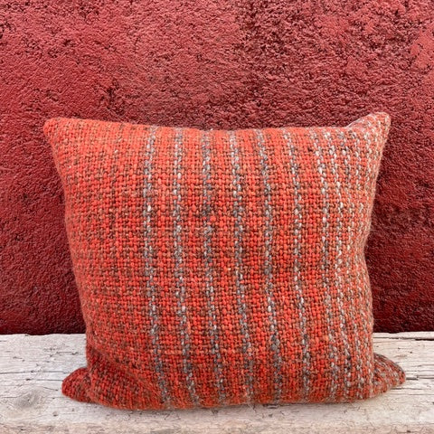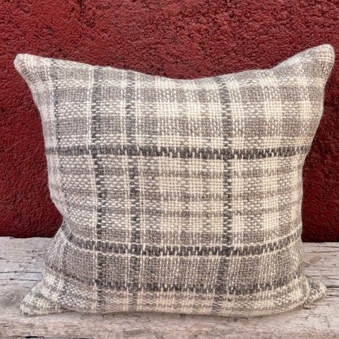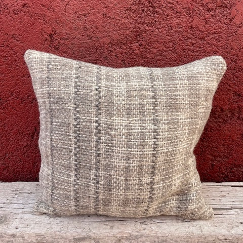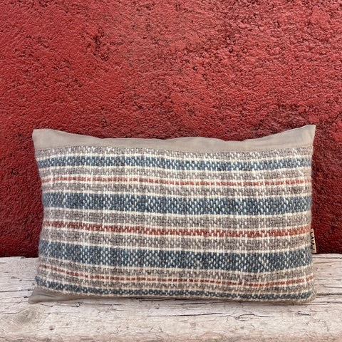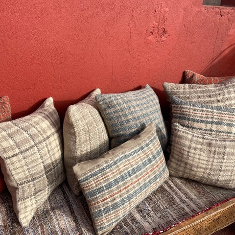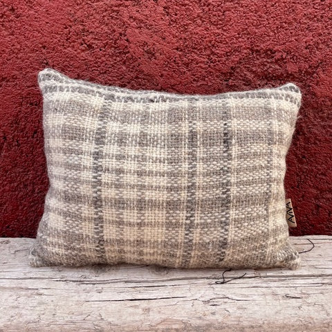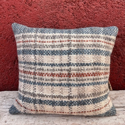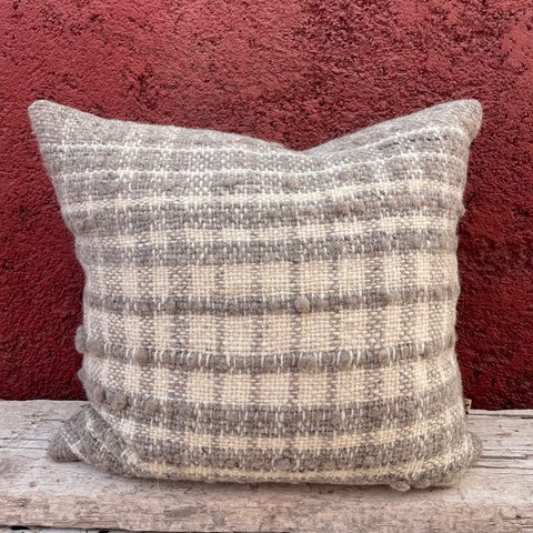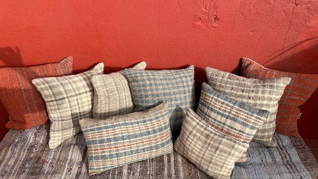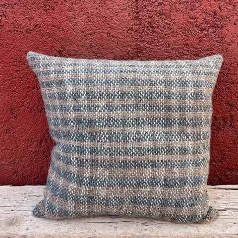Limited edition range of hand woven cushions, made using naturally coloured wool in co-ordinating Check and stripe pattern Natural linen/viscose back with feather inner.