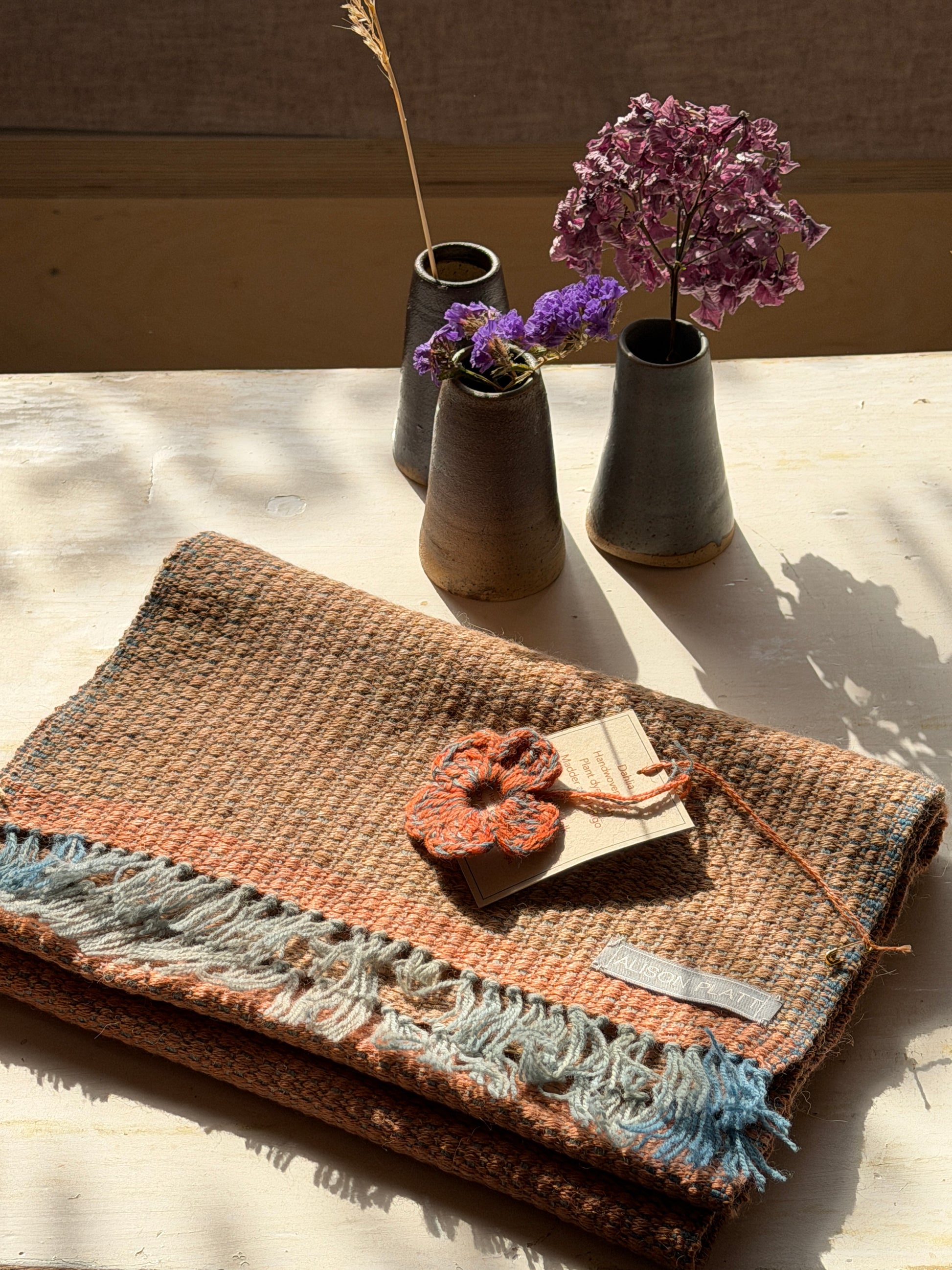 Handwoven scarf in lambswool by Alison Platt, who dyes all her own yarns using various plant dyes at her Norwich studio.