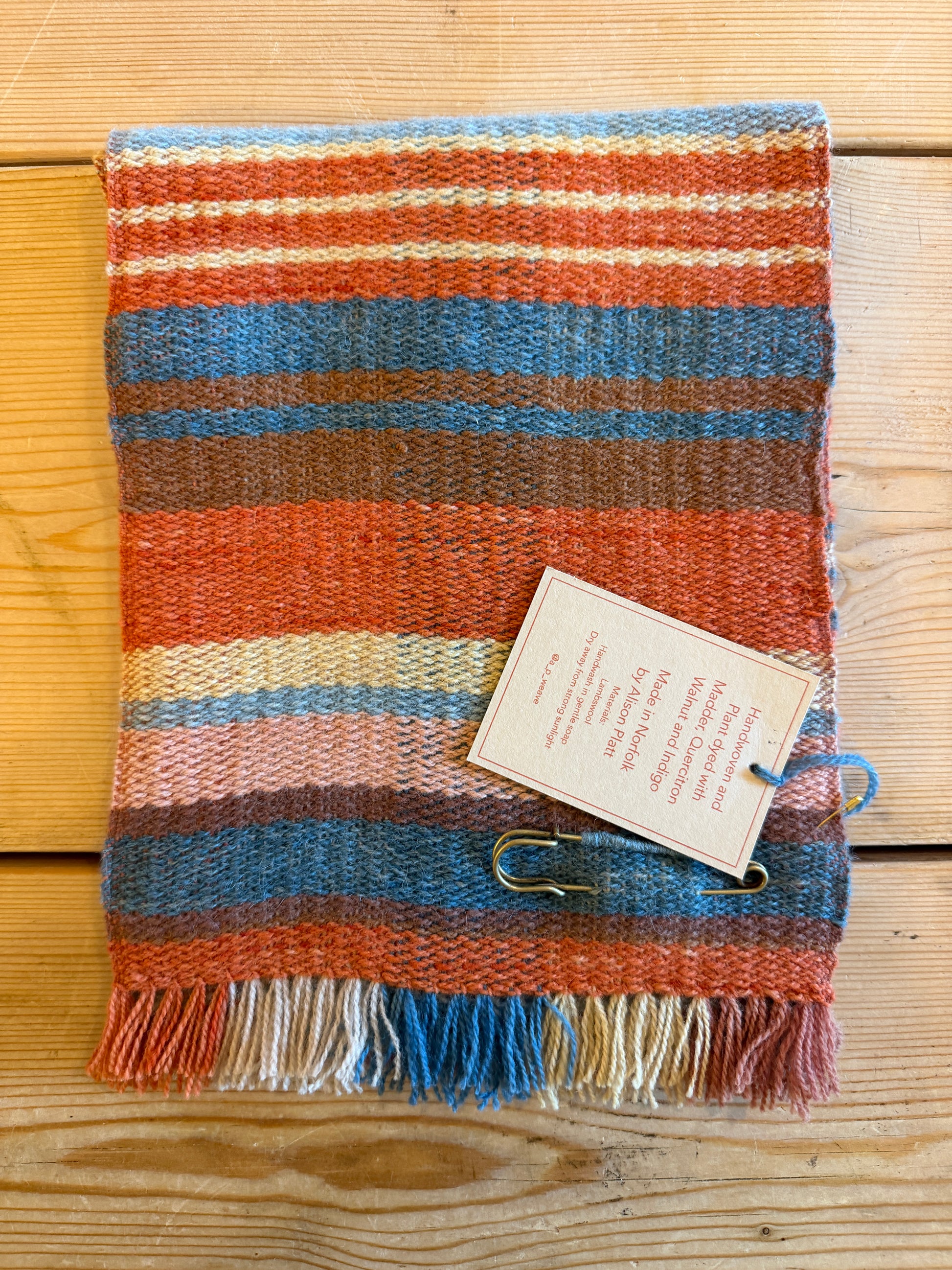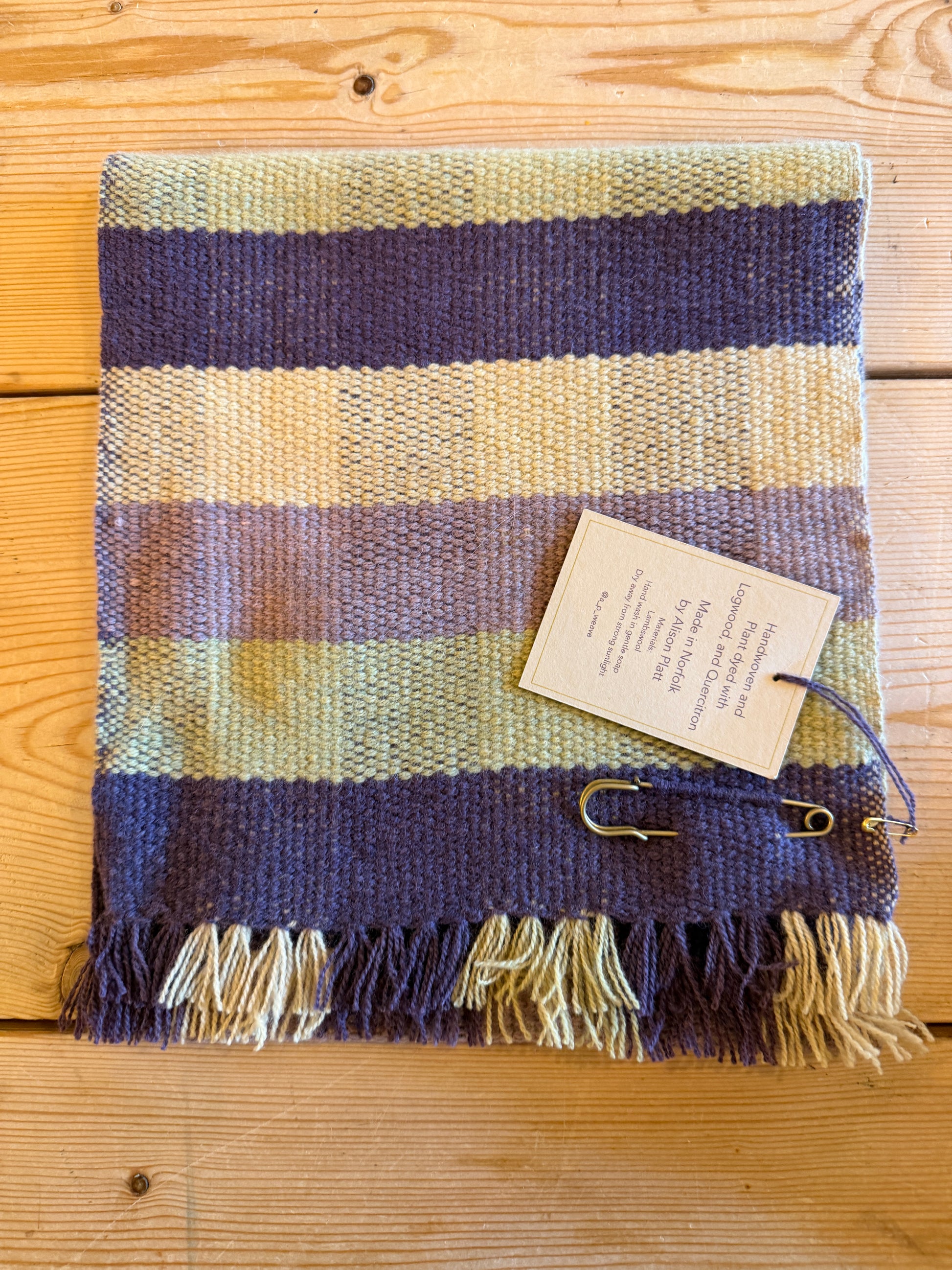 Handwoven Lambswool, Plant Dyed Scarf With Pin.