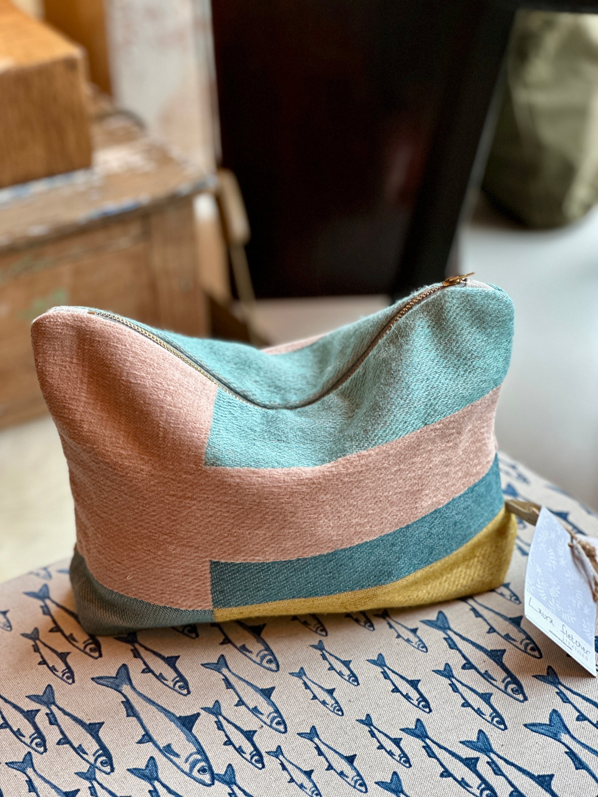 Woven wash bags in various colours & patterns. Sampling developed by hand and woven at Laura's local mill in Suffolk.
